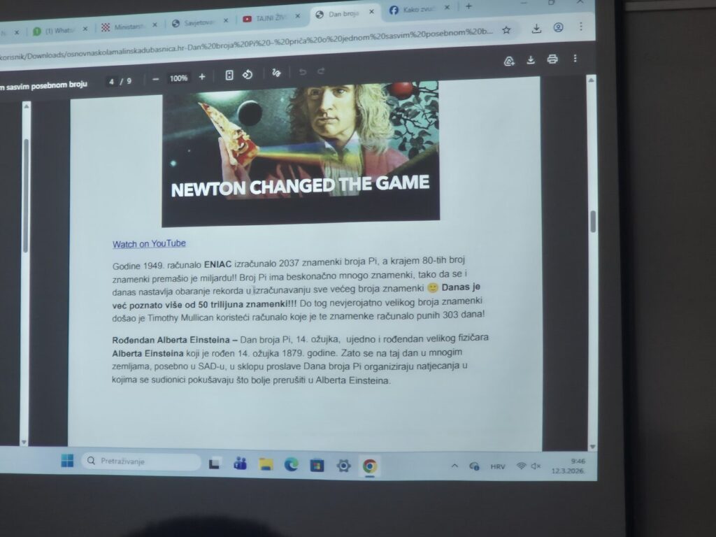 Učenici 7. razreda na satu matematike obilježili su Dan broja Pi kroz različite aktivnosti.