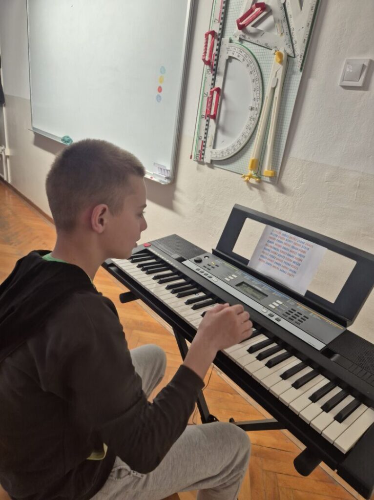 U uvodnom dijelu sata učitelj Senad Omerčić je kroz prezentaciju prikazao povijest broja Pi i njegovo značenje. Učenici su imali zadatak zapamtiti što više znamenki, a pobjednica sa zapamćenih 25 znamenki je bila učenica Petra Karaga. Sat su završili svirajući melodiju prema brojevima i glazbom zaokružili današnju proslavu.