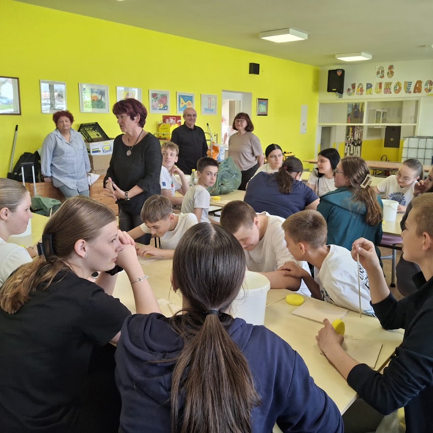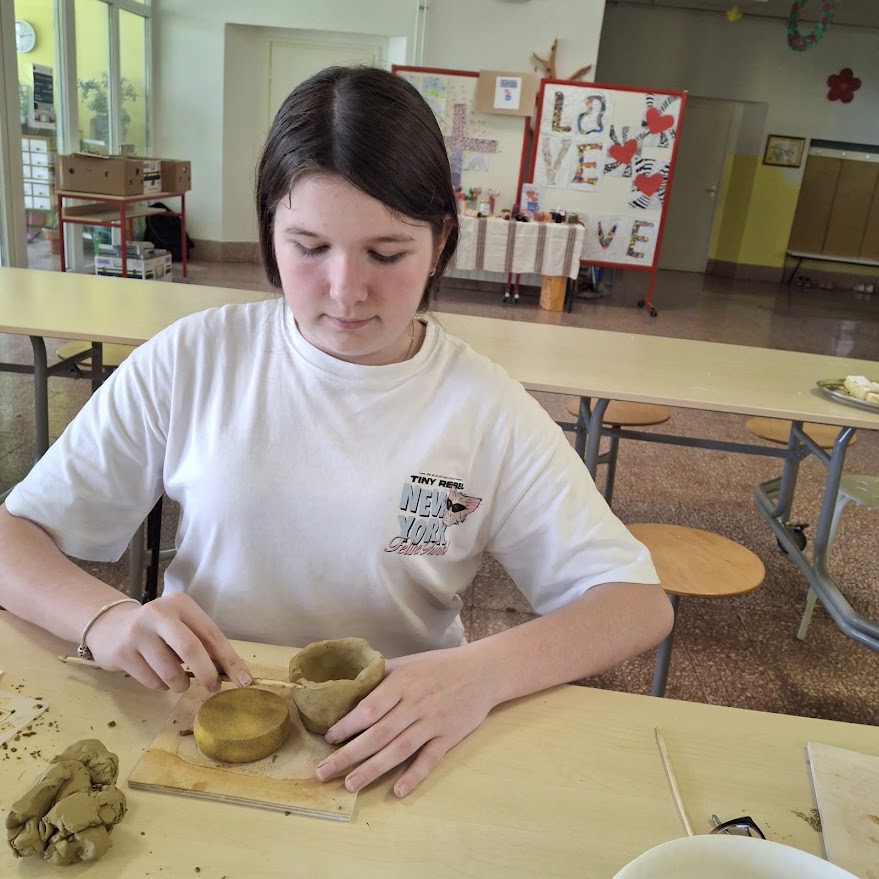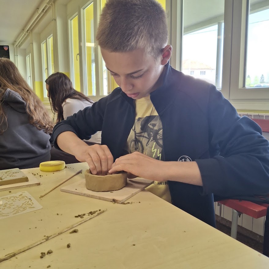17.4.2026. Višnja Dejanović, Vera Tarabić, Palma Milicevic i Matej Jajčinović iz Karamičkog ateljea Petrinja proveli su zanimljivu radionicu za učenike 7. i 8. razreda. Pričali su o petrinjskim lončarima, glini koja je tlo na kojem živimo te o postanku keramičke umjetnosti.